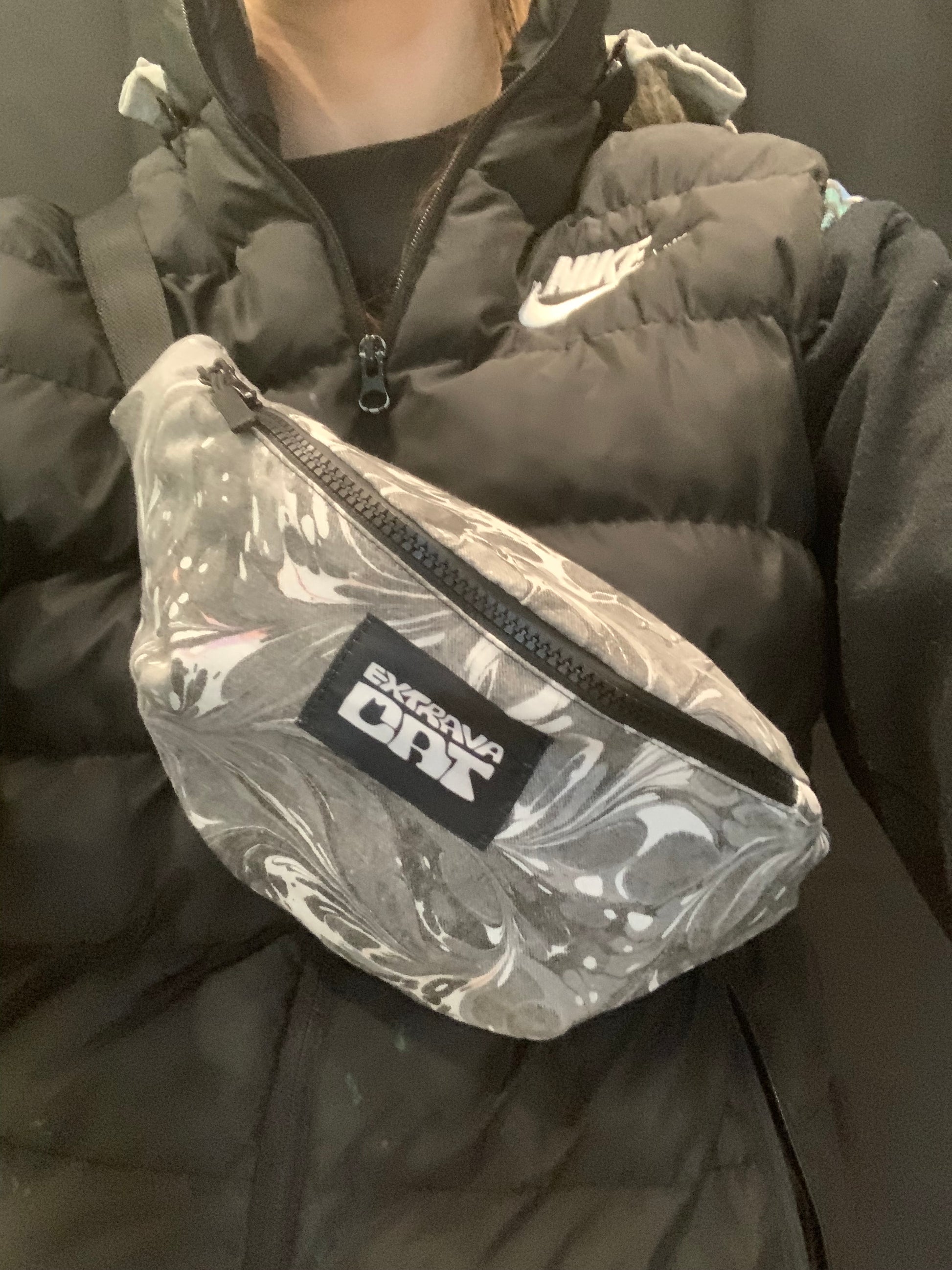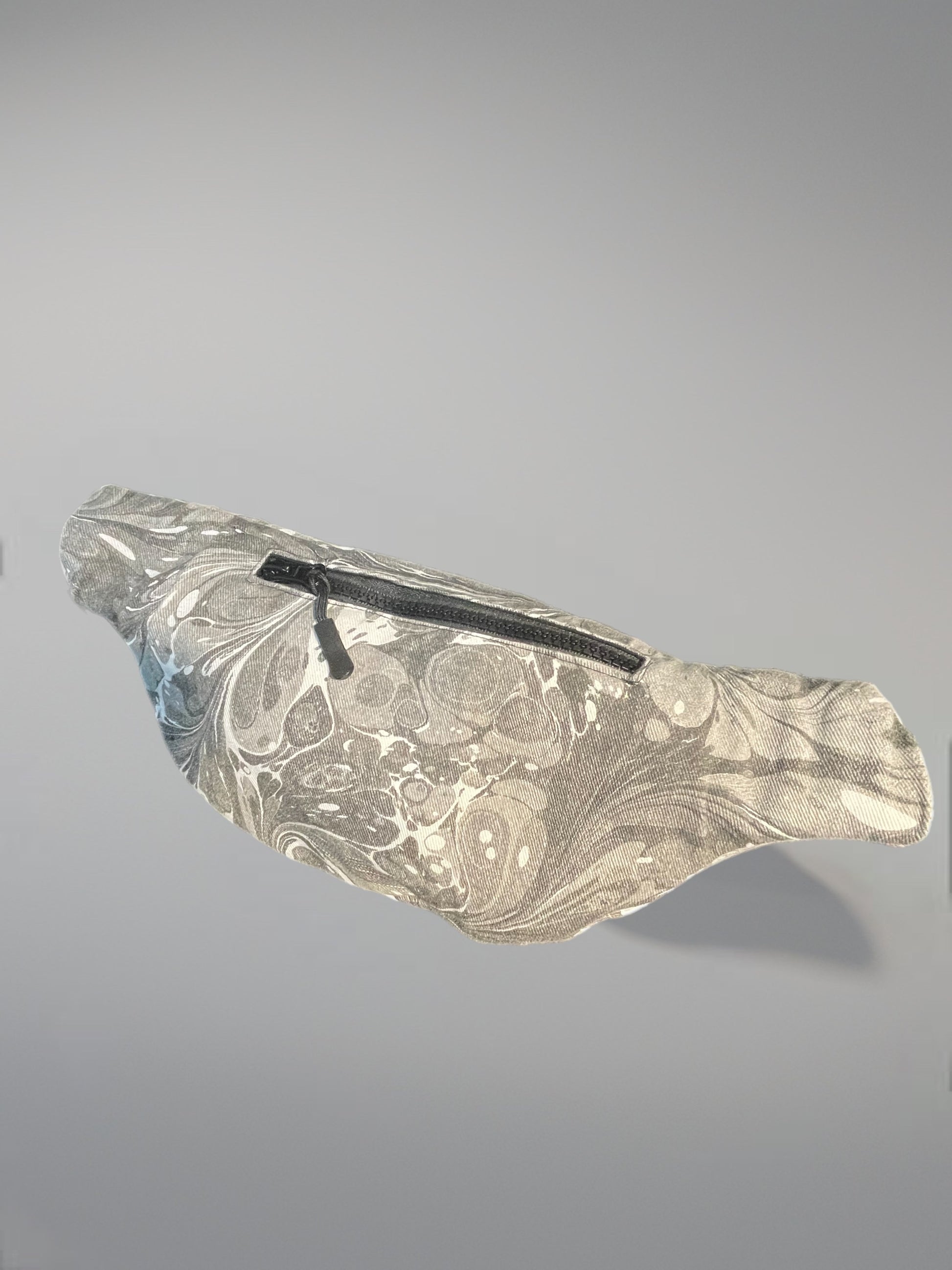 Cucito interamente a mano è fatto in 100% cotone decorato con la tecnica del marbling.