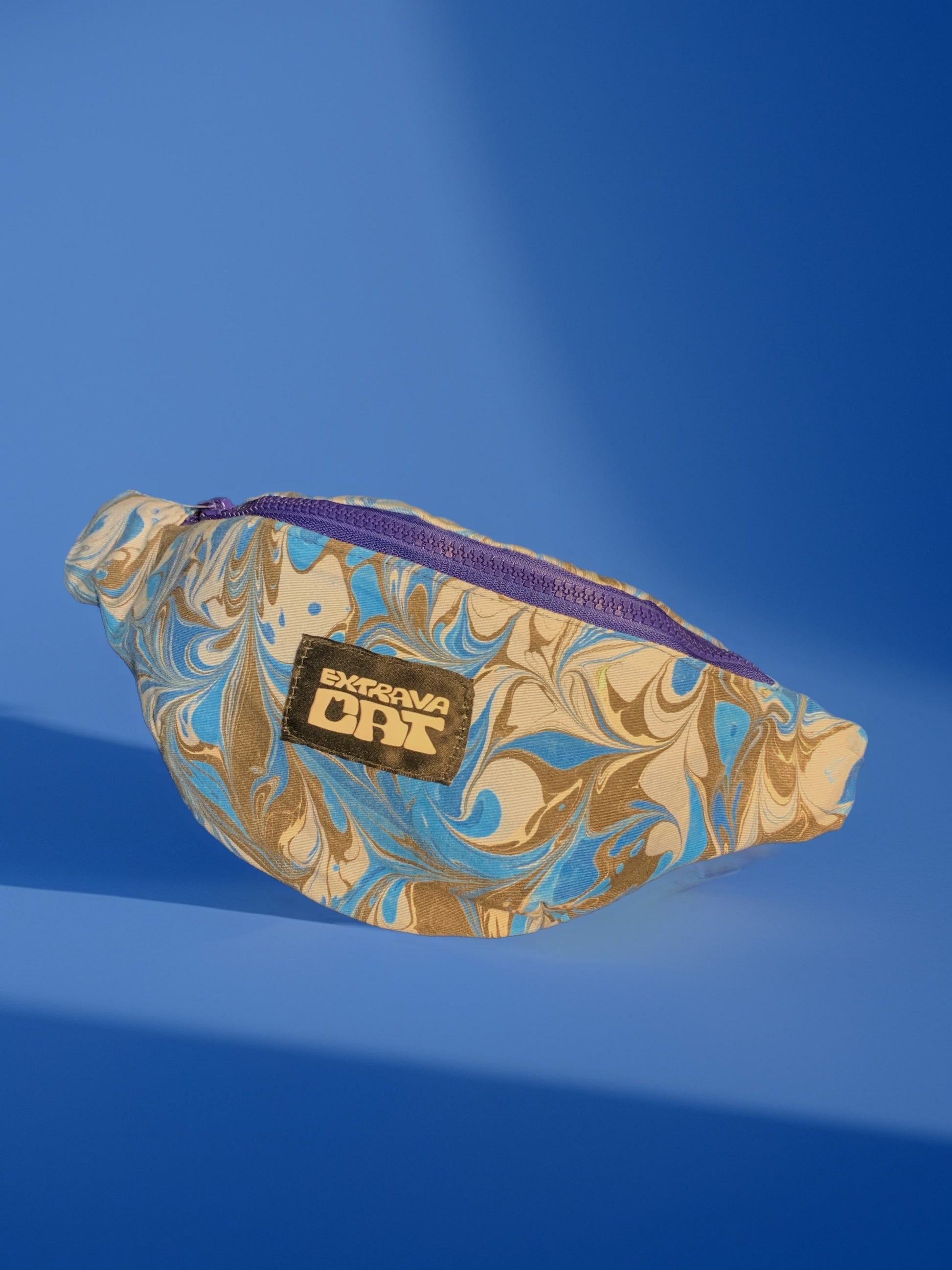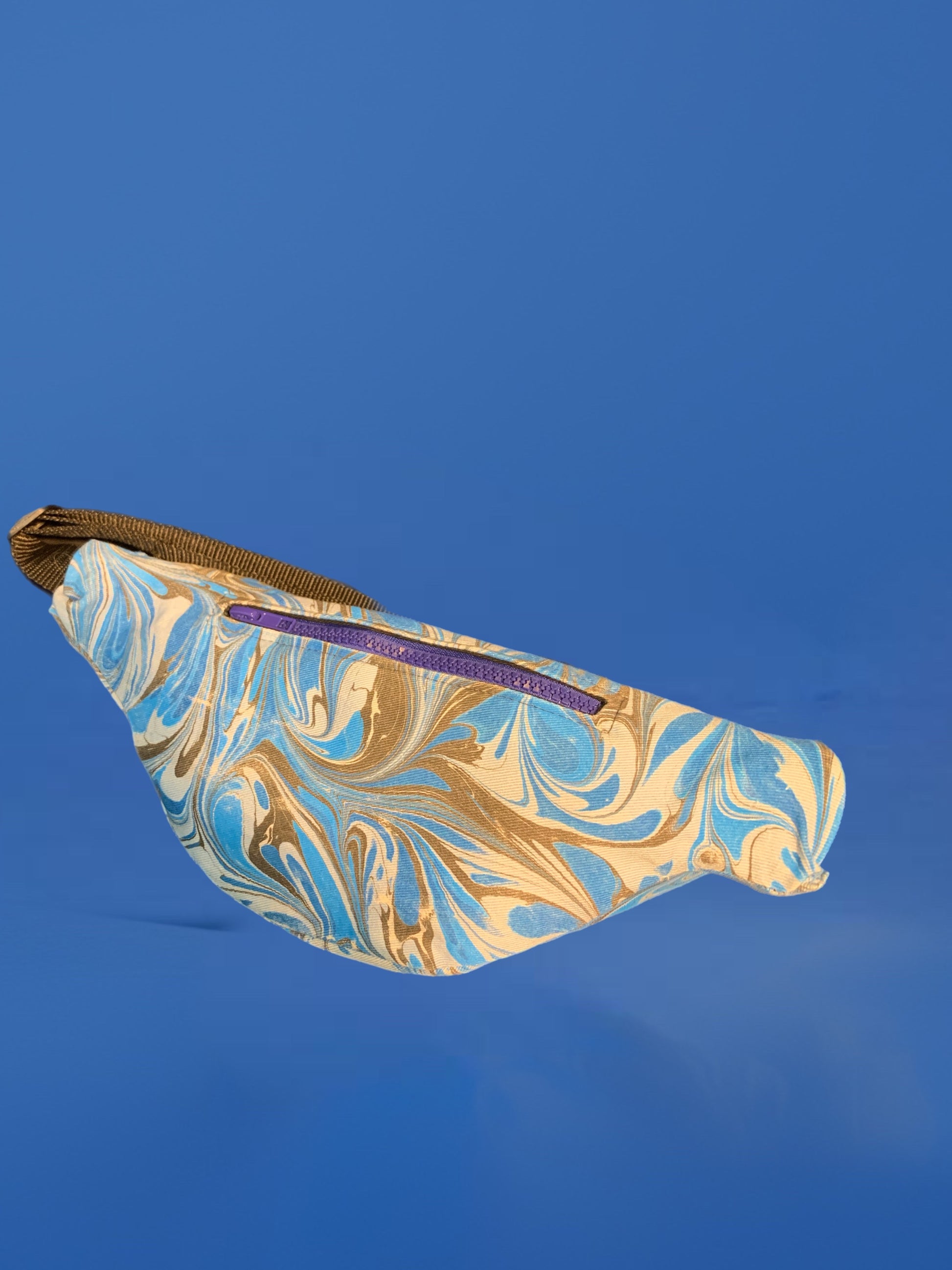 Cucito interamente a mano è fatto in 100% cotone decorato con la tecnica del marbling.