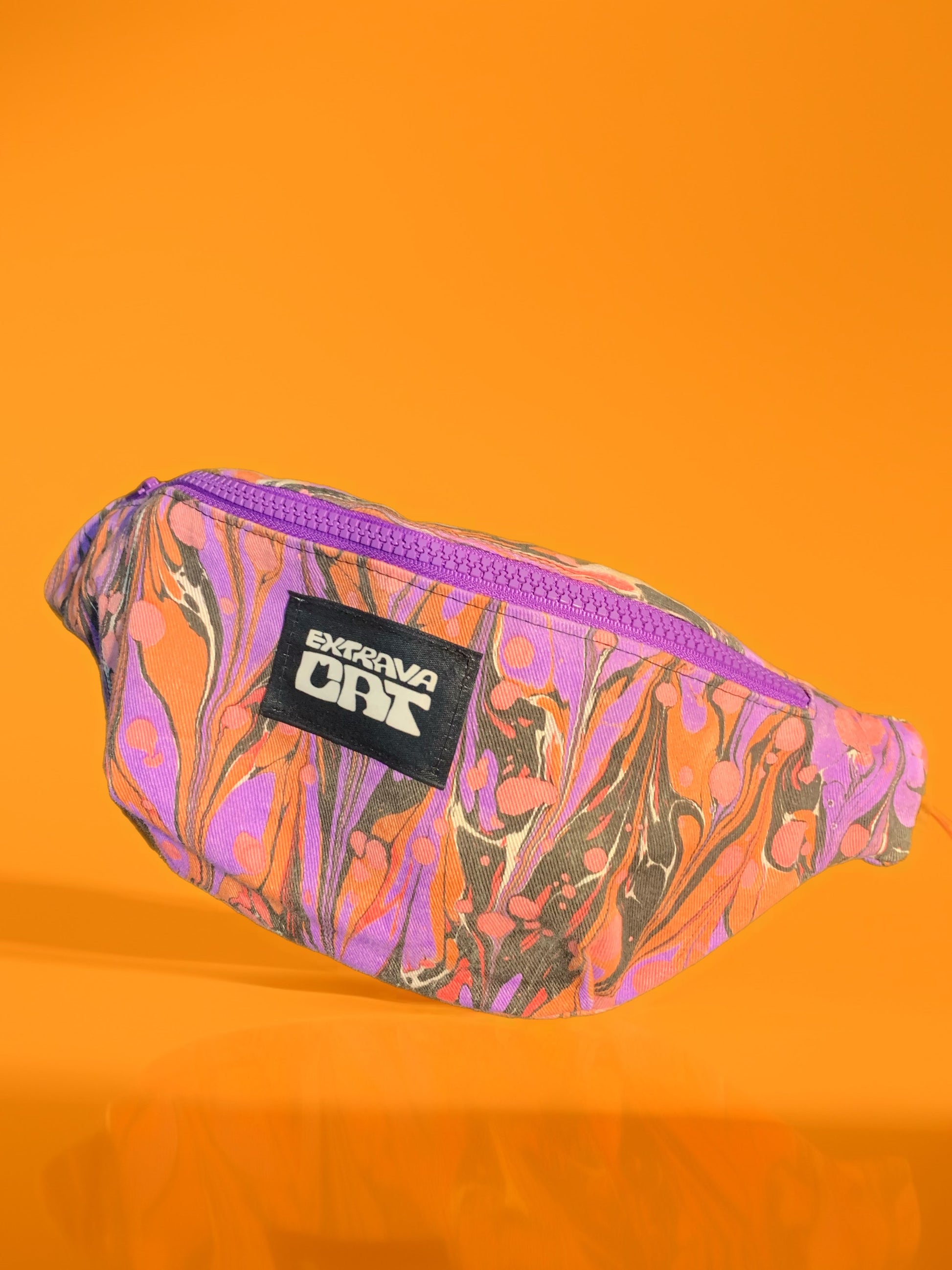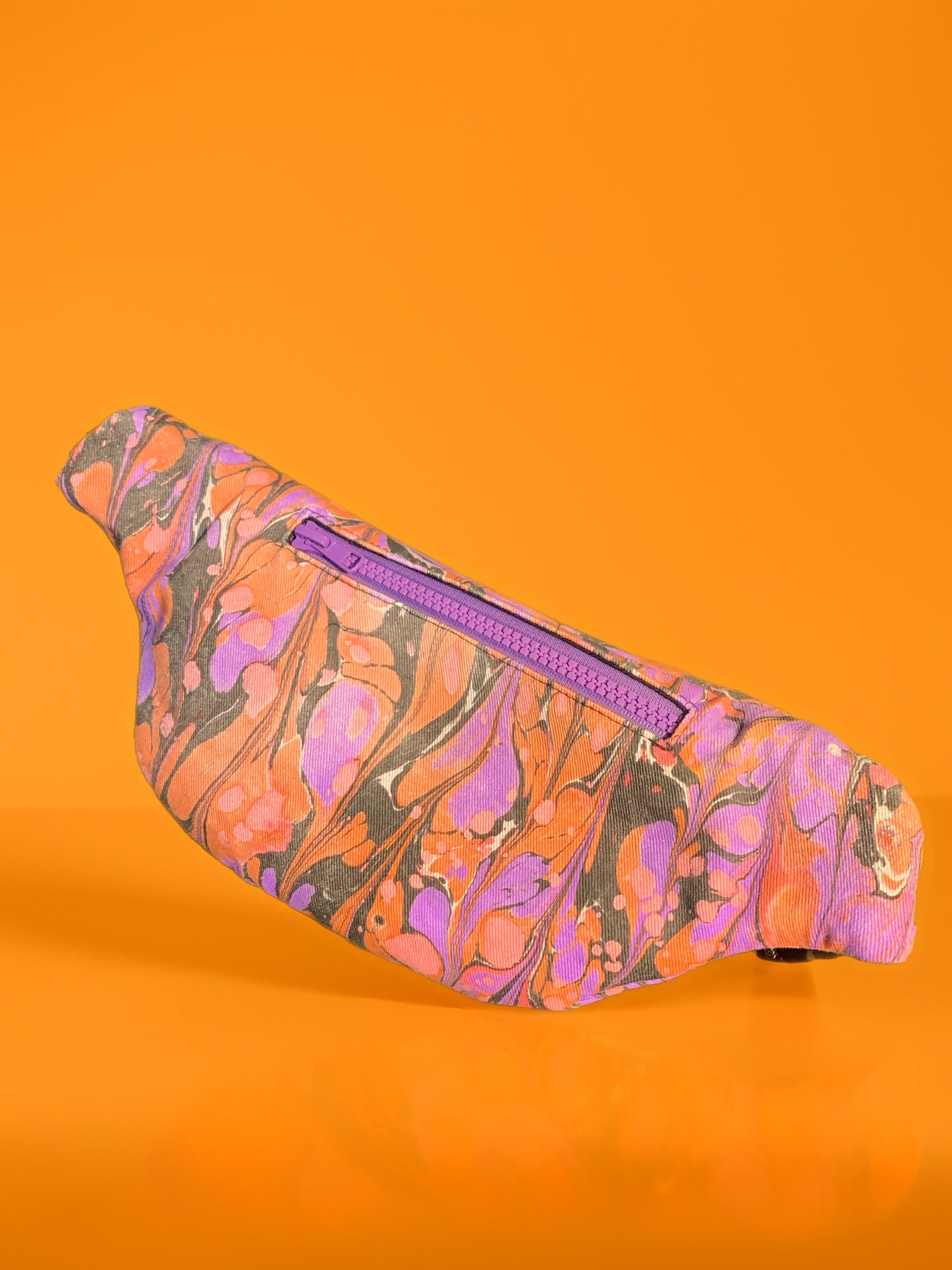 Cucito interamente a mano è fatto in 100% cotone decorato con la tecnica del marbling.